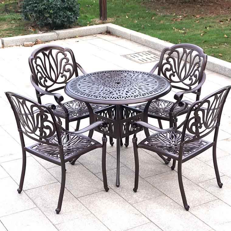 bàn 4 ghê nhôm đúc nâu GN 068