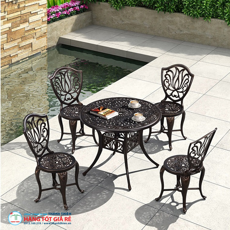 - Nhôm Đúc & Sắt Mỹ Thuật: Các sản phẩm bàn ghế kim loại được sơn tĩnh điện theo công nghệ hiện đại, chống ăn mòn, phù hợp với khí hậu Việt Nam.