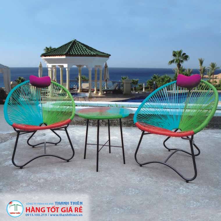 - Nhựa Giả Mây: Sợi nhựa PE cao cấp, có hoạt chất kháng tia UV, được đan thủ công trên khung kim loại chắc chắn, tạo ra sản phẩm vừa có nét đẹp truyền thống, vừa bền bỉ với thời gian.