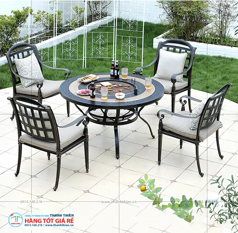 - Nhôm Đúc & Sắt Mỹ Thuật: Các sản phẩm bàn ghế kim loại được sơn tĩnh điện theo công nghệ hiện đại, chống ăn mòn, phù hợp với khí hậu Việt Nam.