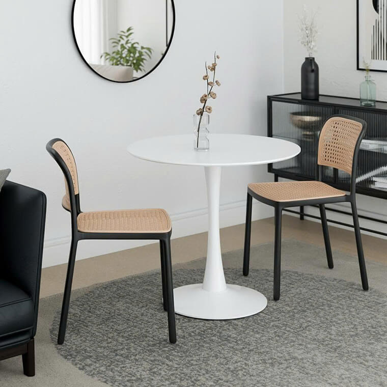 - Nhựa Giả Mây: Sợi nhựa PE cao cấp, có hoạt chất kháng tia UV, được đan thủ công trên khung kim loại chắc chắn, tạo ra sản phẩm vừa có nét đẹp truyền thống, vừa bền bỉ với thời gian.